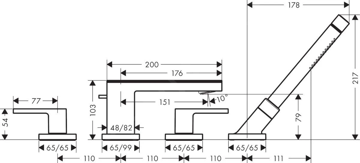 - maximale uittrekbare lengte van de handdouche: 1,10 m
