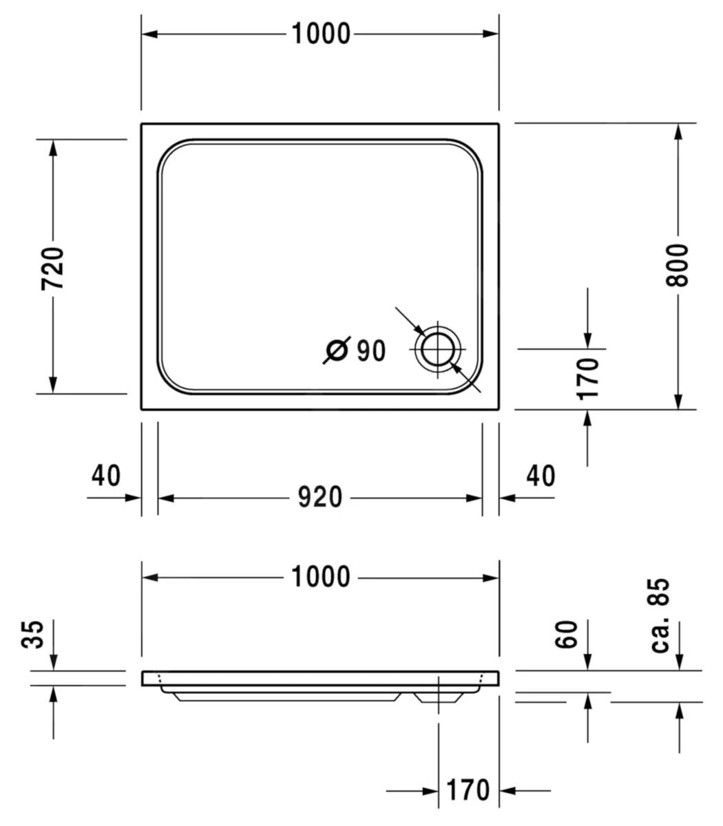 - diameter afvoer: 90 mm
