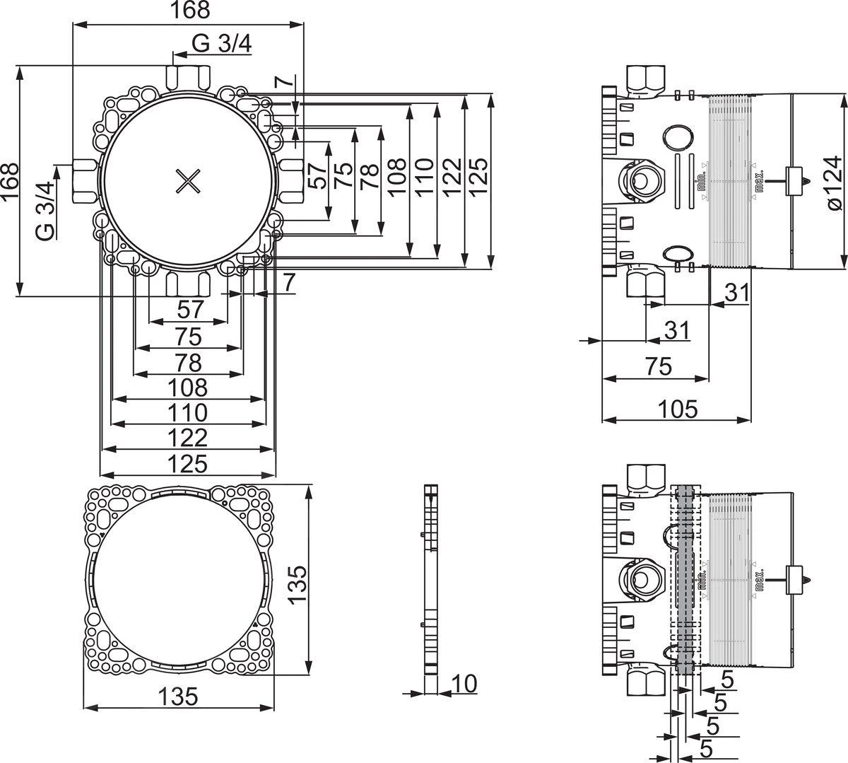- alle aansluitigen: G 3/4 (4x)